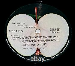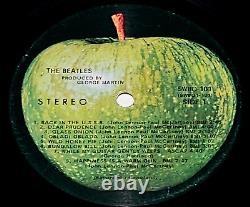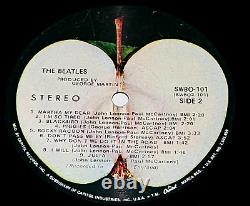 Poster is EX and ALL 4 ORIGINAL heavy stock portrait photos are MINT!! The inner/outer spines are in EX condition. Nice glossy shine on this amazing EX/NM cover, showing no seam splits , NO writing, NO stickers, and no rips/tears. Top right corner shows a minor bend.NO WRITING on any of the record labels, and NO WRITING on the sleeve anywhere. This is as nice as you'll see for sale, at this price. ALL the photos you see are completely undoctored and free from any Photoshop, and are of the EXACT treasures you will receive!! You really don't want to miss this one, as White Albums with these rare 7 errors, EX/NM cover, all 4 NM Original photos and EX original poster with lyrics, rarely come along! Side 1: SWBO-1-101- J46 #4.